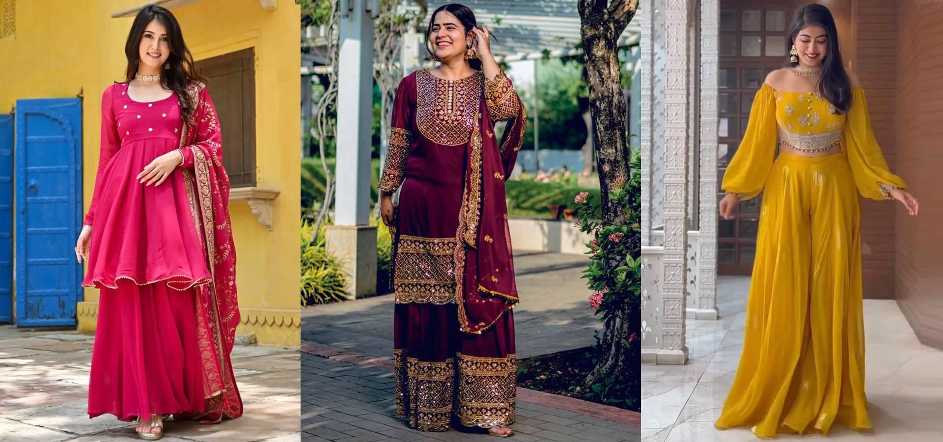 View all!- Georgette Kurta Sharara Set with Embroidery & Flowy DupattaAs low as ₹2,599.00